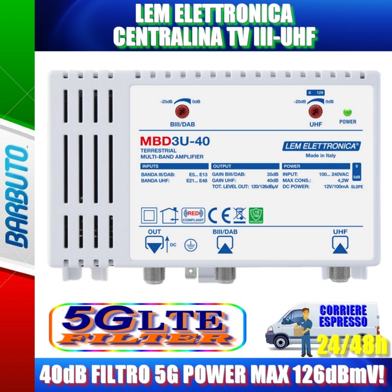 CENTRALINO TV 2 INGRESSI GUADAGNO MAX. 40dB 126dBmV