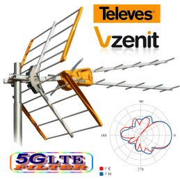 ANTENNA TELEVES ZENIT UHF 15dB ALTO FILTRAGGIO LTE 5G TELEVES 149221 - 149222
